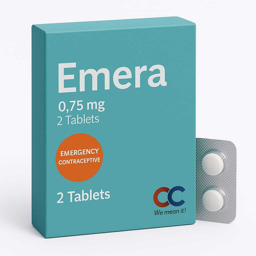 Emera is a 2-tablet emergency contraceptive containing 0.75 mg levonorgestrel per tablet. Taken 12 hours apart, it helps reduce the risk of pregnancy after unprotected sex or contraceptive failure. Safe, effective, and easy to follow, Emera provides reliable backup protection when timing matters.